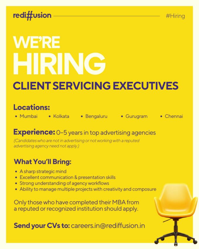 ByCreativeBrandsMagNovember 28, 2025Ready to shape the future of iconic brands? Send your CV to: careers.in@rediffusion.in