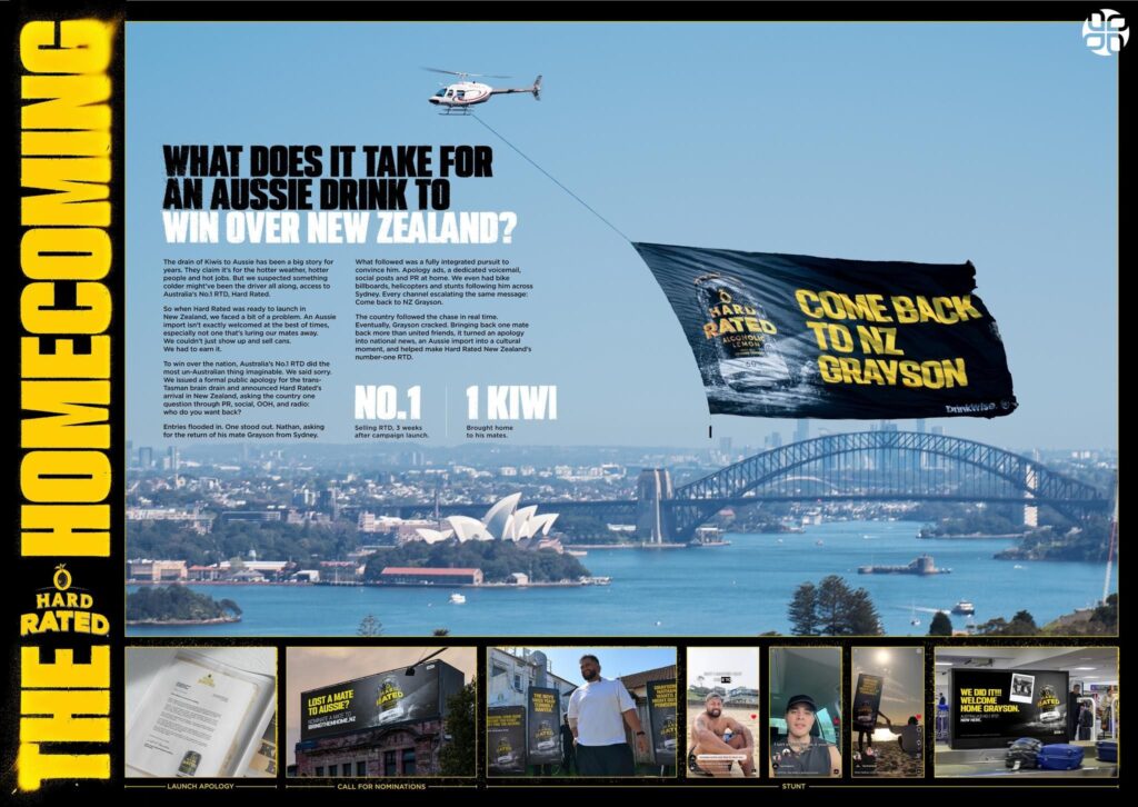 Another Silver in Brand Experience & Activation went to The Hard Rated Homecoming, a campaign that brought emotional depth to the awards tally. Its recognition highlighted Droga5 ANZ’s ability to balance humour, heritage, and heartfelt storytelling, ensuring that its work stood out not only for craft but also for cultural impact.