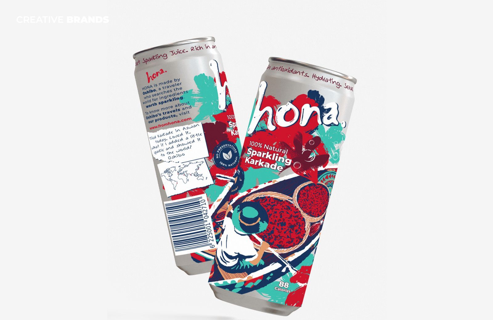 Created from the ground up, the Hona brand was designed to translate the well-known taste of karkade—an infusion made from hibiscus flowers—into a modern beverage concept that feels fresh, vibrant and relevant to today’s consumers. The project involved shaping the product’s overall identity, tone and visual communication to ensure the drink stands out in an increasingly competitive craft and speciality beverage market.