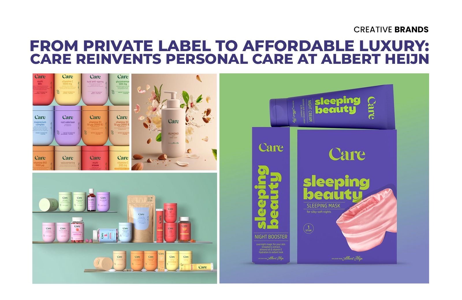 Albert Heijn’s exclusive personal care brand Care has undergone a major repositioning led by Brand Potential Benelux. Moving beyond its price-led private label origins, the brand now embraces an “affordable luxury” identity inspired by food and nutrition, blending sensory design, ingredient storytelling and cohesive packaging architecture to enhance quality perception and customer experience.