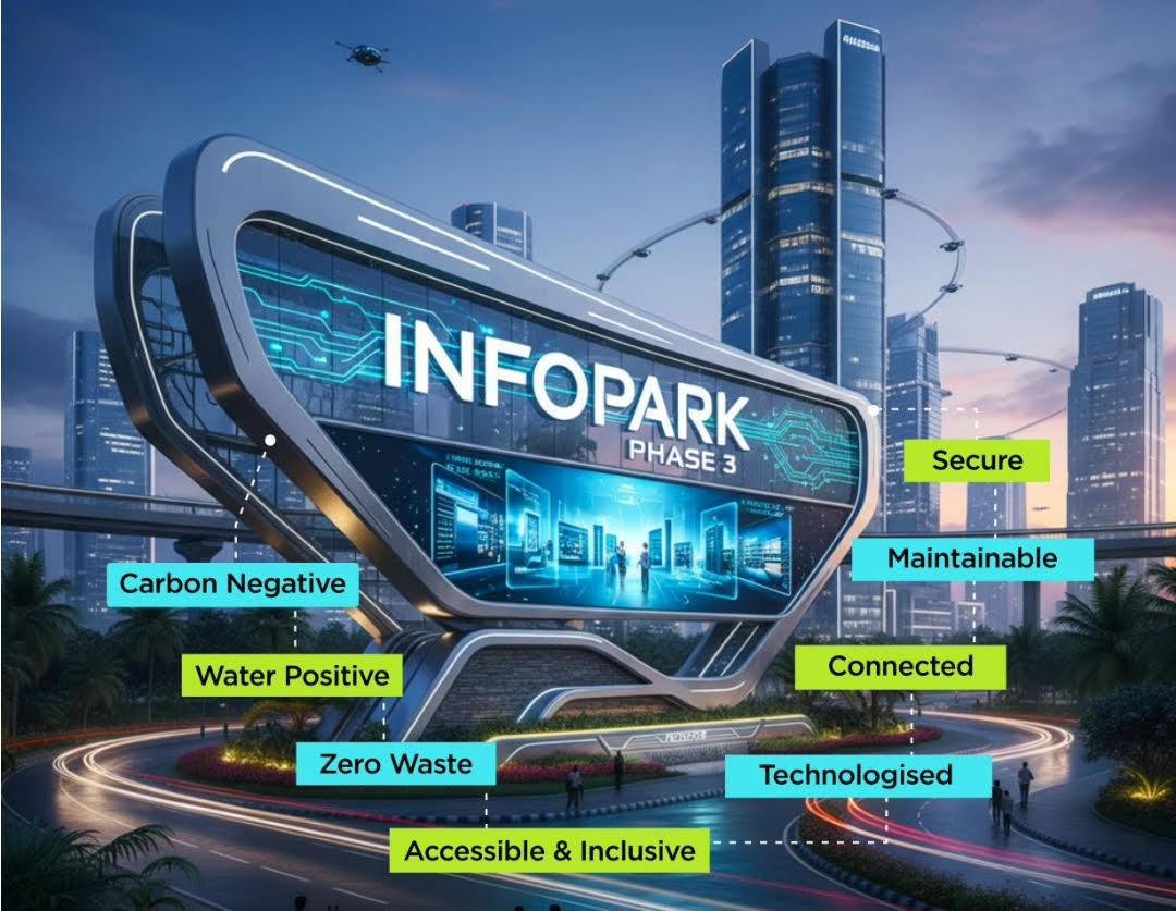 Sustainability lies at the heart of the project. Infopark Phase 3 is envisioned to be carbon-negative, water-positive, and zero-waste, making it a model for eco-conscious growth. By embedding these principles into its design and operations, the development seeks to balance innovation with responsibility, ensuring that progress does not come at the cost of the environment.