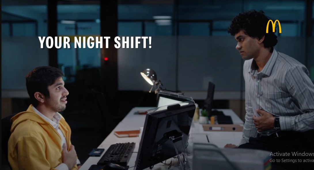 The second film highlights McDonald’s as a destination for professionals working late at night. Set in a quiet office during late hours, it follows a programmer who is startled by mysterious growling sounds. The tension builds until he discovers it’s simply his colleague’s hungry stomach. The scene transitions to both of them enjoying a meal at McDonald’s.