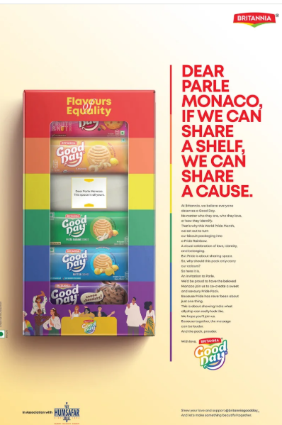 In a heartfelt nod to Pride Month, Britannia Good Day unveils its special edition ‘Flavours of Equality’ Pride Pack, championing inclusion and representation across India. Conceptualized by Enormous, the campaign revolves around a powerful gesture of inclusion, with Britannia Good Day extending an open invitation to Parle Monaco to be part of its specially crafted Pride Pack