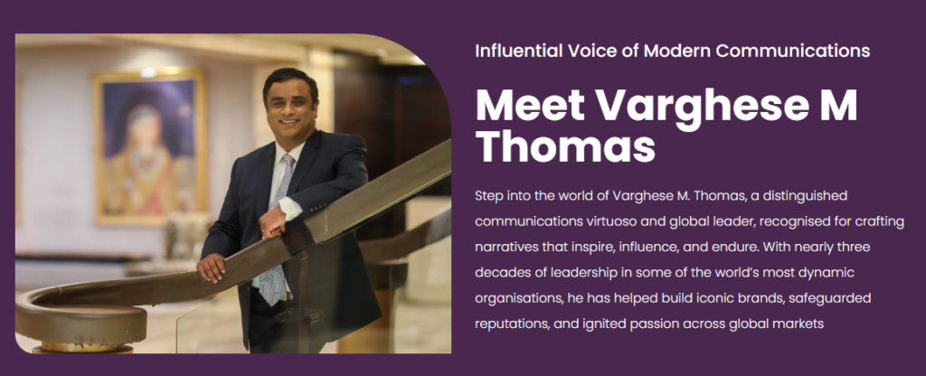 Varghese M. Thomas is a globally recognised communications leader, known for shaping narratives that inspire trust, enhance reputations, and create lasting impact. With almost thirty years of experience advising C-suite executives and guiding influential brands, he is an award-winning strategist celebrated for bringing clarity and insight to complex challenges. His career includes leadership roles at multinational corporations such as Intel, Cisco, and BlackBerry, as well as leading Indian conglomerates like TVS Motor, Greaves Cotton, and Tata Electronics—providing him with broad expertise across both international and domestic markets. A respected thought leader, he has contributed to leading publications and books on communications, and most recently, made his fiction debut with Whispers in the Shadows.