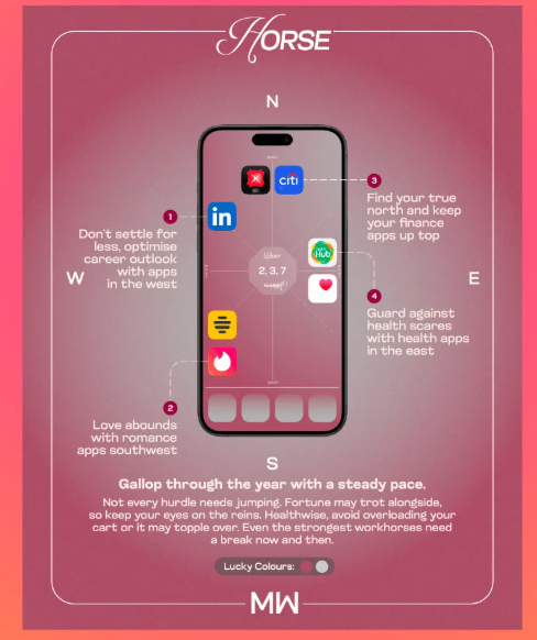 To celebrate Lunar New Year, McCann Worldgroup Singapore has unveiled Phone Shui—a witty yet thought-provoking spin on feng shui that reimagines digital harmony. This playful concept encourages users to arrange their phone apps strategically for career, romance, finance, and health, drawing inspiration from age-old feng shui principles.