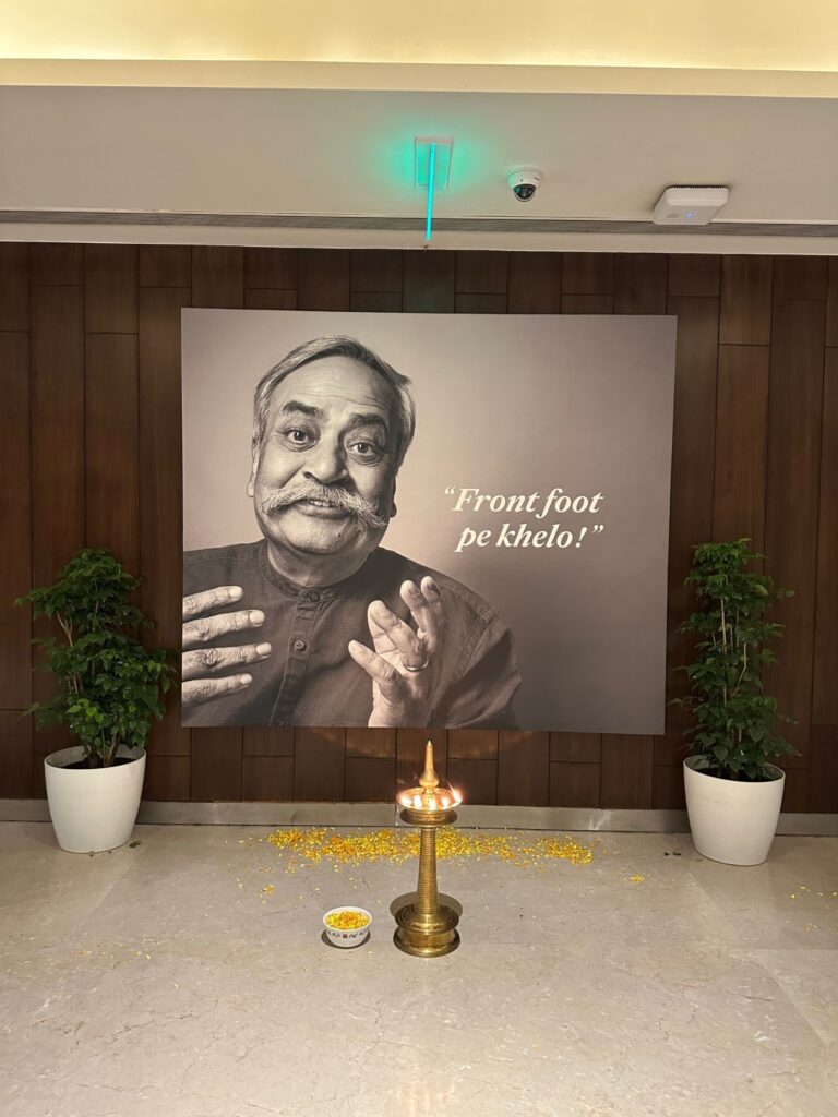 Shot by acclaimed photographer Suresh Natarajan, the portrait carries both visual gravitas and emotional resonance. Known for his ability to capture personality beyond pose, Natarajanโ€™s lens presents Pandey not merely as an advertising legend, but as a thinker, mentor, and storyteller. The installation also features some of Pandeyโ€™s most iconic advice lines that have been repeated in classrooms, creative reviews, and late-night brainstorming sessions across the industry. These words, etched alongside his image, serve as a daily reminder of the principles that defined his work: simplicity, honesty, cultural rootedness, and respect for the consumer.